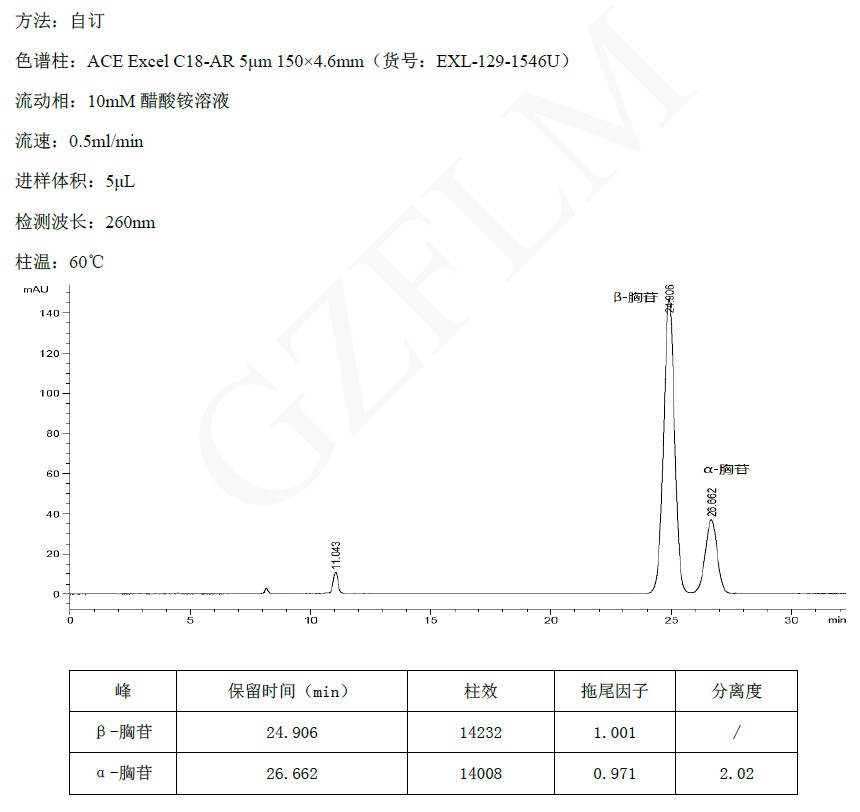 1.β-胸苷(dT)與α-胸苷的分離