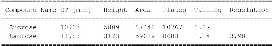 圖 2. 菲羅門MerCury NH2 乳糖專用柱在開放的環(huán)境下色譜結(jié)果
