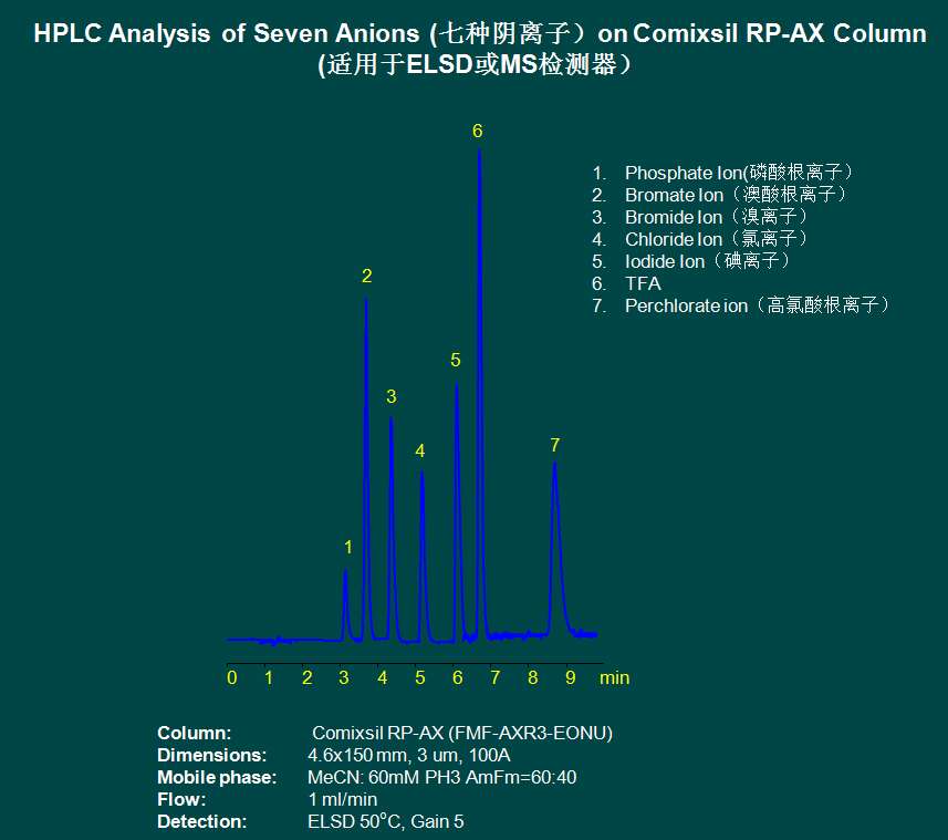 七種陰離子檢測(基因毒性和元素雜質相關應用圖譜)菲羅門液相柱